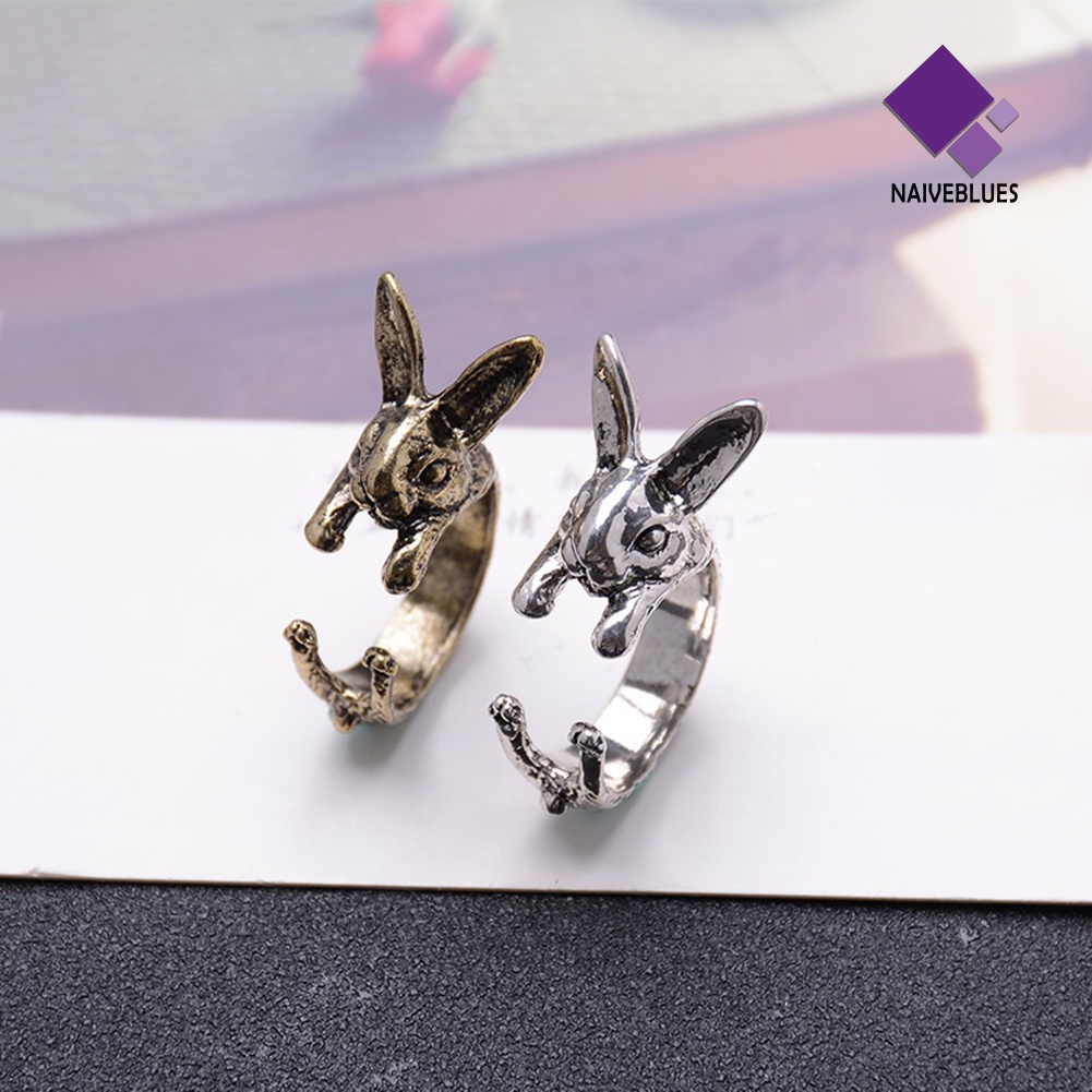 < Naiveblues > Vintage Rabbit Mid Finger Knuckle Opening Ring Pasangan Perhiasan Hadiah