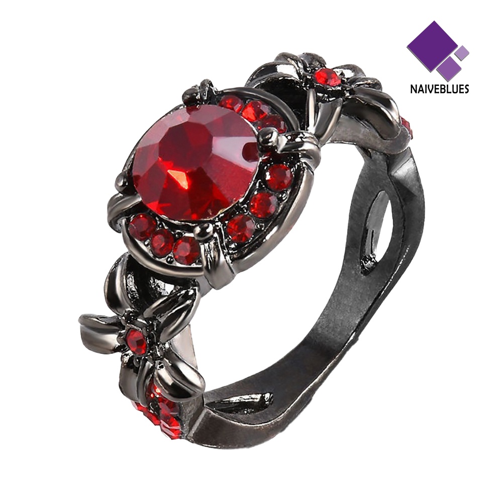 Detail < Naiveblues > Wanita Buatan Retro Safir Ruby Berlian Imitasi Pernikahan Pertunangan Cincin
