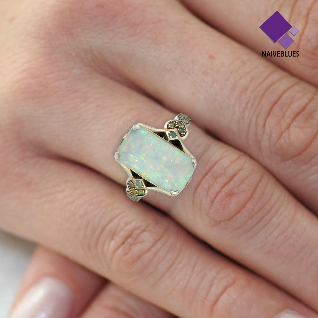 Detail < Naiveblues > Wanita Cincin Persegi Perhiasan Permata Imitasi Vintage Geometris Cincin Hadiah
