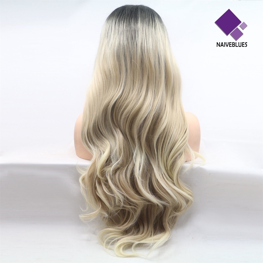 Perawatan & Kecantikan > Alat Rambut > Alat Rambut Lainnya > < Naiveblues > Wig Keriting Panjang Universal Halus Ringan Medium Split Smoky Grey Gradient Wig Untuk