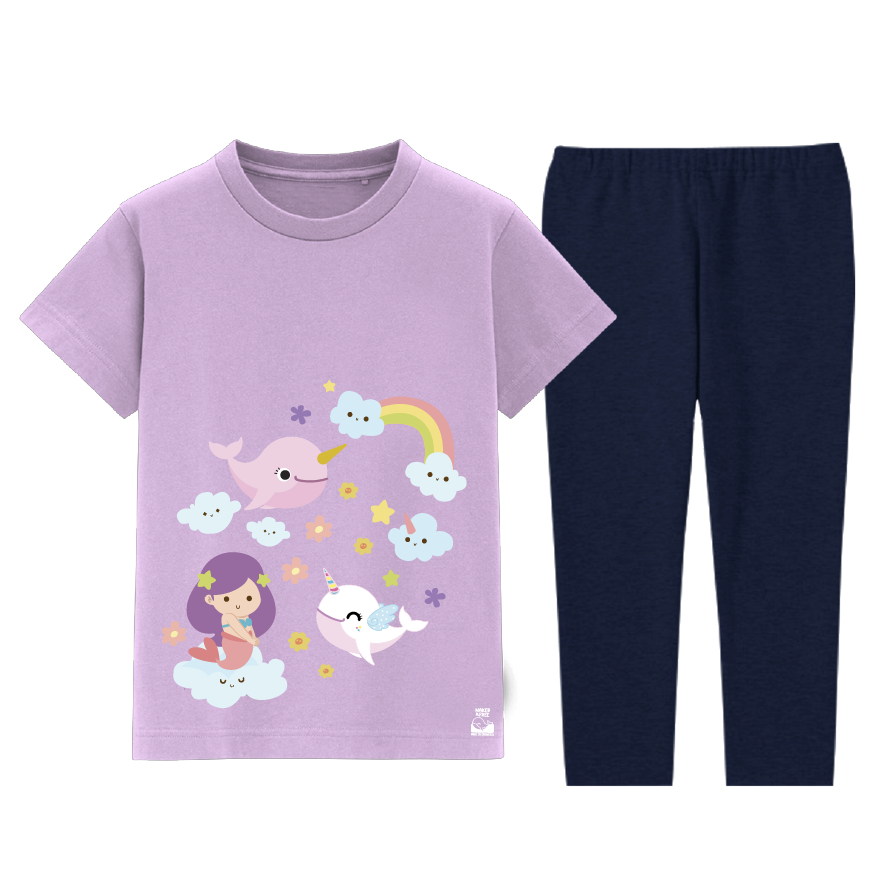 Detail Naked & Free Piyama Pendek Anak Mermaid Series WhaleMermaid Usia 2-8 Tahun Bahan Katun Combed 30s