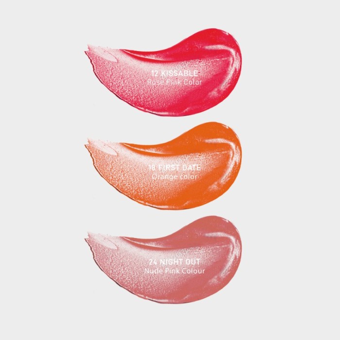 Terdapat 3 varian warna untuk keseharianmu! 12 Kissable - rose pink color 18 First Date - orange color 24 Night Out - nude pink color