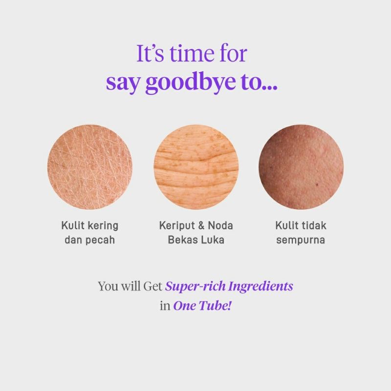 Cepat menyerap, ringan, dan tidak lengket Pure lavender essential oil yang beraroma khas dan menenangkan bagi kulit Castor Seed Oil untuk melembabkan, meningkatkan kehalusan & kelembutan kulit Niacinamide untuk mencerahkan kulit Shea Butter untuk melembabkan dan menutrisi kulit Minyak Biji Macadamia untuk memperkuat struktur kulit, dan meregenerasi kulit kering & pecah-pecah Kandungan Cynanchum Atratum untuk memperkuat fungsi lapisan kulit Aroma menenangkan dari Patchouli Oil / Minyak Tilam dan sebagai anti inflamasi (mengurangi munculnya keriput, noda, bekas luka, dan ketidaksempurnaan kulit) Soybean Oil / Minyak Kedelai sebagai anti-oxidant untuk mengurangi tanda penuaan (kusam dan keriput)