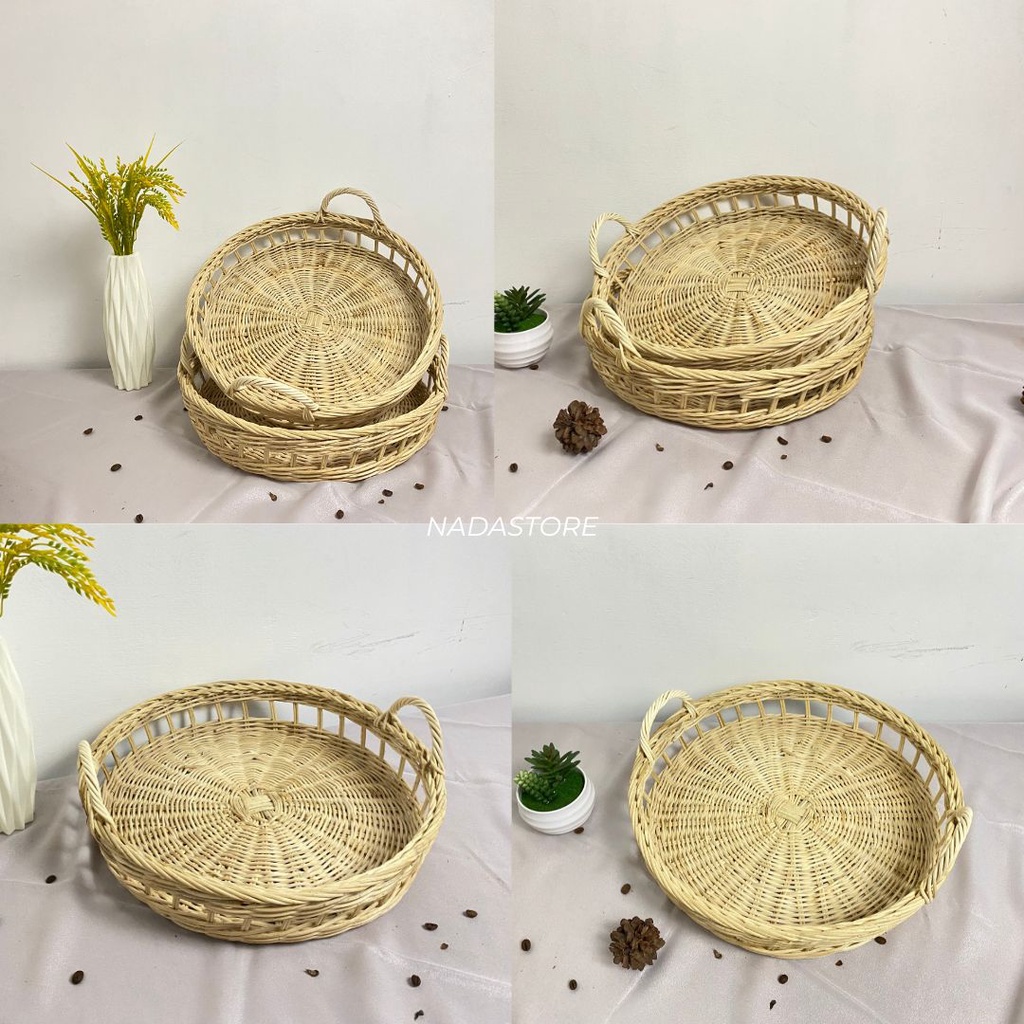 Nampan Bulat Baki Rotan bisa berfungsi sebagai tempat gelas, piring, buah, makanan. Bisa juga untuk dekorasi atau hiasan meja agar meja terlihat lebih indah dan cantik. Sangat cocok untuk diletakkan pada area dapur, untuk kebutuhan rumah tangga.