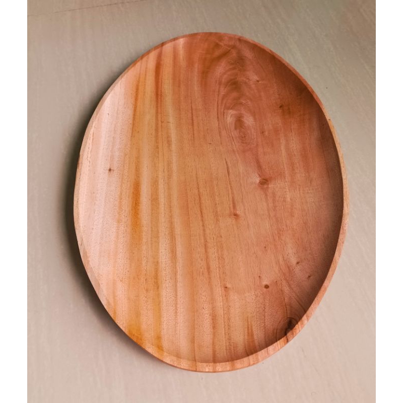 nampan dengan motif oval lebar 30cm panjang 40cm tinggi 2,5cm dari bahan kayu mahoni tanpa sambungan. natural aman digunakan
