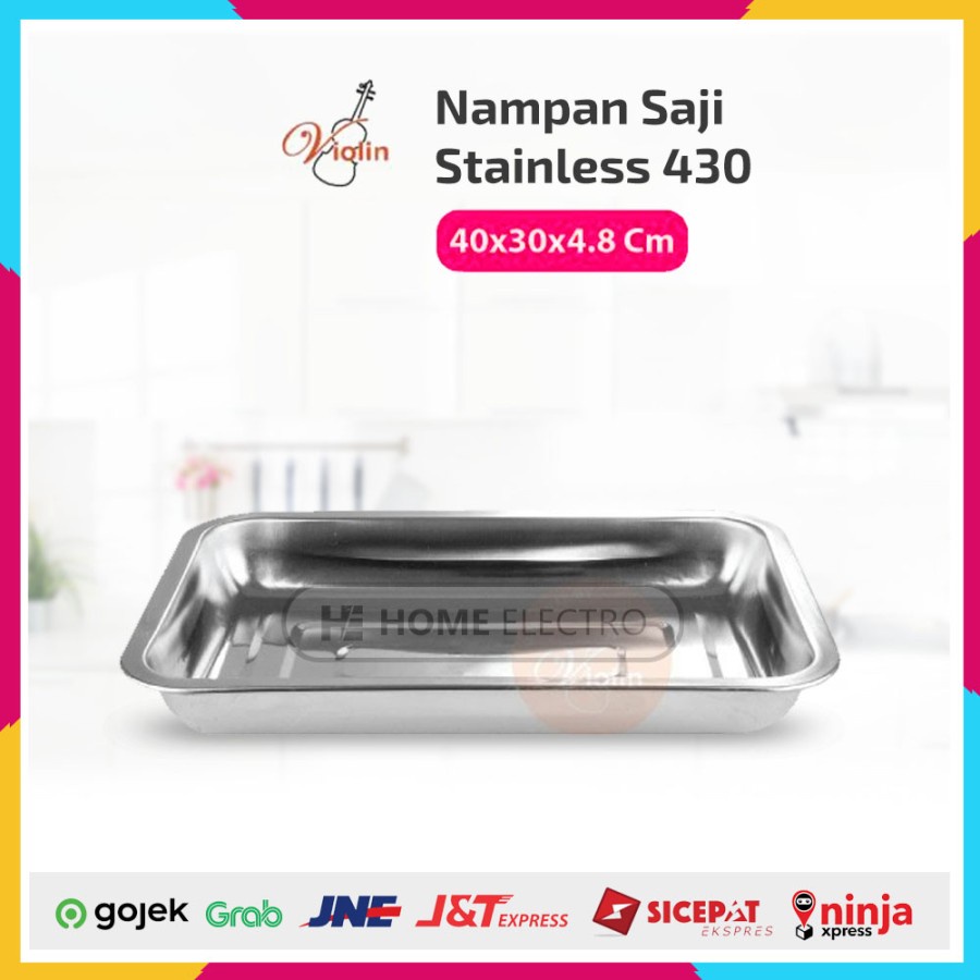 Perlengkapan Rumah > Peralatan Masak > Alat & Dekorasi Baking > Nampan Saji Tebal Violin Stainless 430 Tray Baki Tatakan - 40 x 30 x 4.8cm