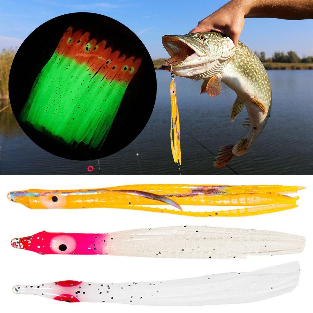 Paket: Tas OPP Paket termasuk: 20 pcs Umpan Gurita Air Garam Air Garam Umpan Cumi-cumi Umpan Umpan Umpan Umpan Ekor Panjang Fishing Tackle Silikon Lembut Buatan 8CM Berenang Bercahaya Warna Tahan Lama Acak