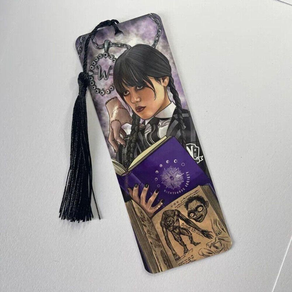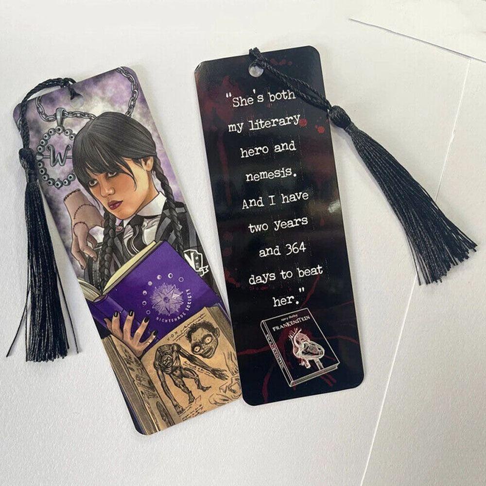 Perkenankan perbedaan 0,5-1 inci karena pengukuran manual. (1 inci = 2,54 cm) Bookmark Dua Sisi untuk Rabu Addams & Kipas Angin Membaca Hadiah Pesta Kerajinan Kerajinan Alat Baca Koleksi Kreatif Baru