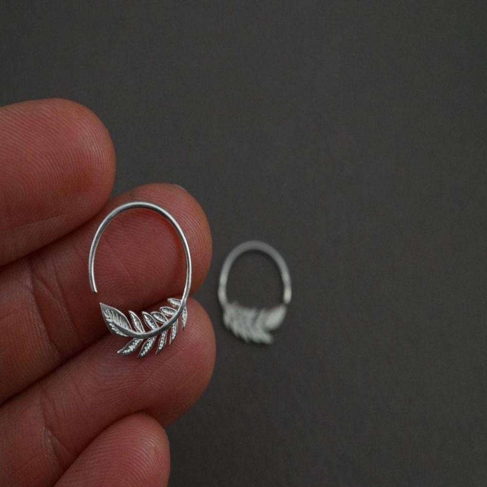 Detail Nanas Tiny Leaf Ear Hoop Daily Party Anting Daun Warna Silver
