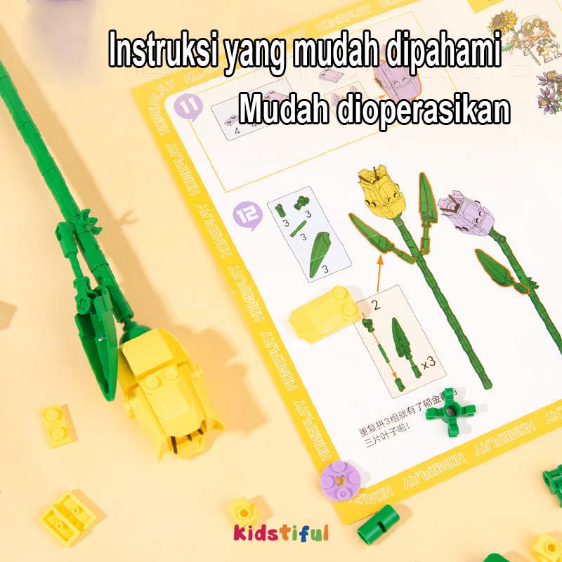 Detail Nano Bricks Flower Mainan Nano Brick Balok Buket Bunga Blok Susun Bangunan Flower Bouquet DIY Untuk Dekorasi Meja Hadiah Ulang Tahun