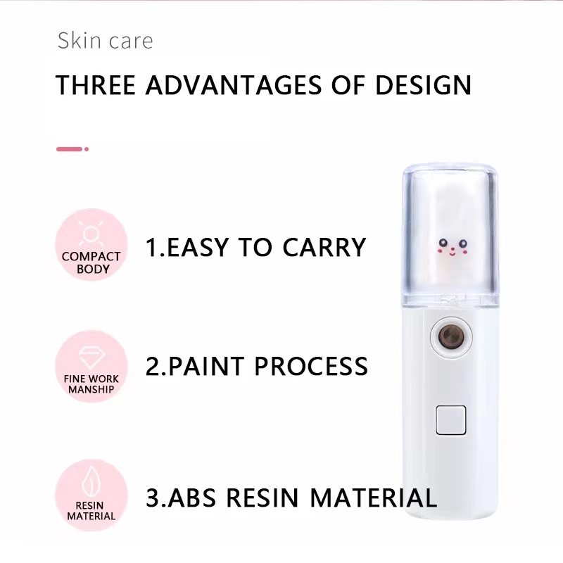 Fitur: . Mengubah air menjadi ukuran spray sehingga mudah di serap kulit wajah . Melembabkan kulit dan mencerahkan wajah . Di lengkapi dengan cermin di bagian atas . Di lengkapi dengan baterai yang bisa di charger