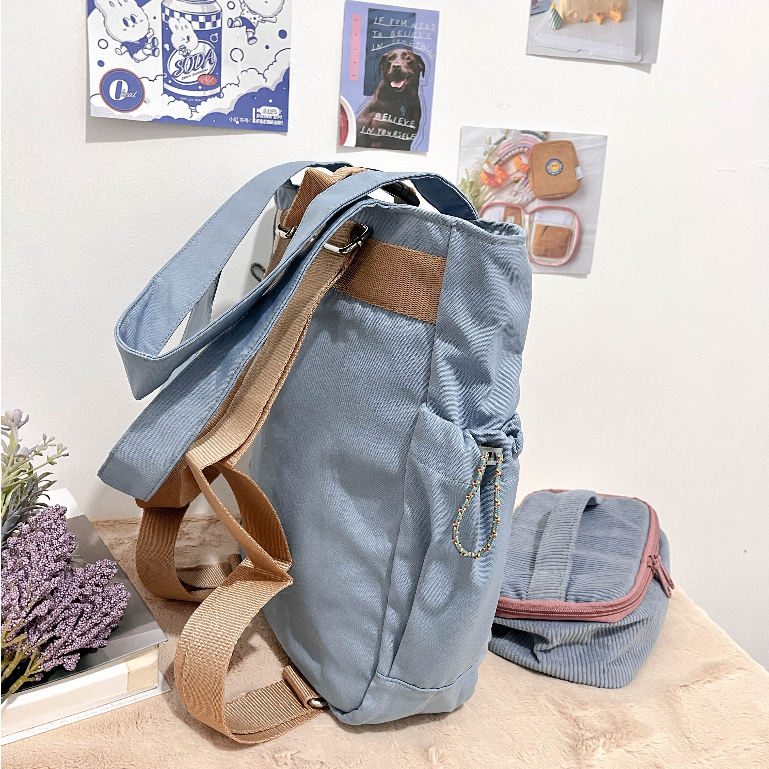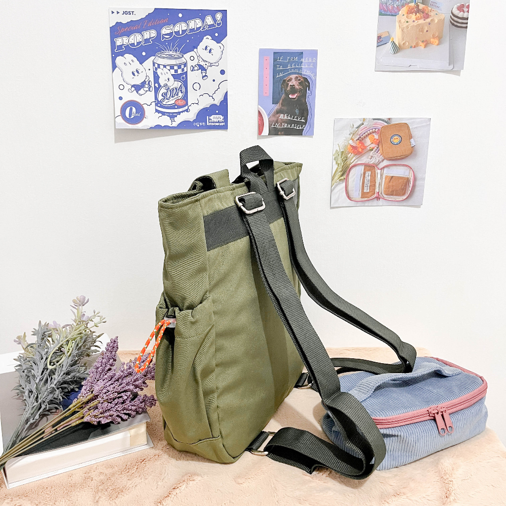 ketika kamu main, tas ini bisa dijadikan "daily activity" bag kamu dengan di set sebagai totebag namun ketika kamu harus bawa banyak barang, tas ini bisa diubah menjadi backpack! WOW bgt gasiiiii....