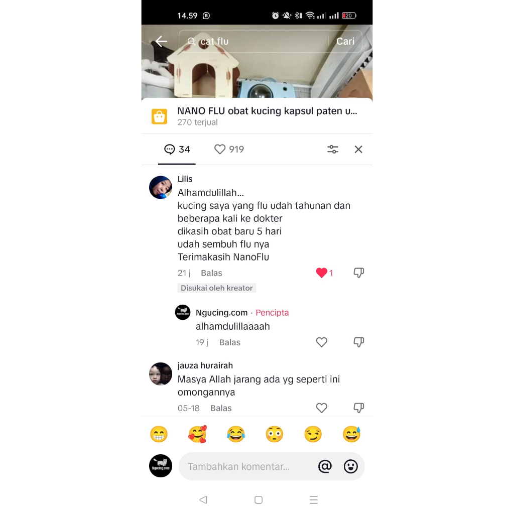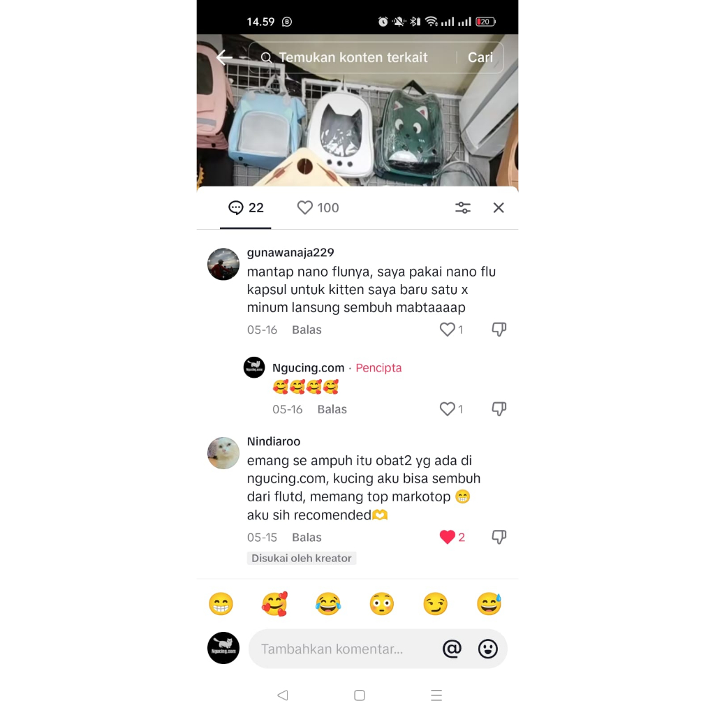 Video perkenalan produk NANOFLU obat racik kucing untuk flu akut tahunan yang tidak sembuh-sembuh. Sumber: Shopee.