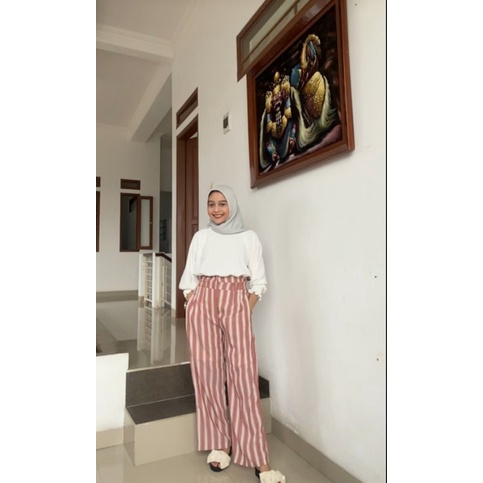 NAOMI SET ONE SET by Pinkhijab_boutique (Blouse & Culotte) WARNA CREAM & TAUPE ONESET CRINKLE PREMIUM NAOMI BLOUSE SETELAN WANITA