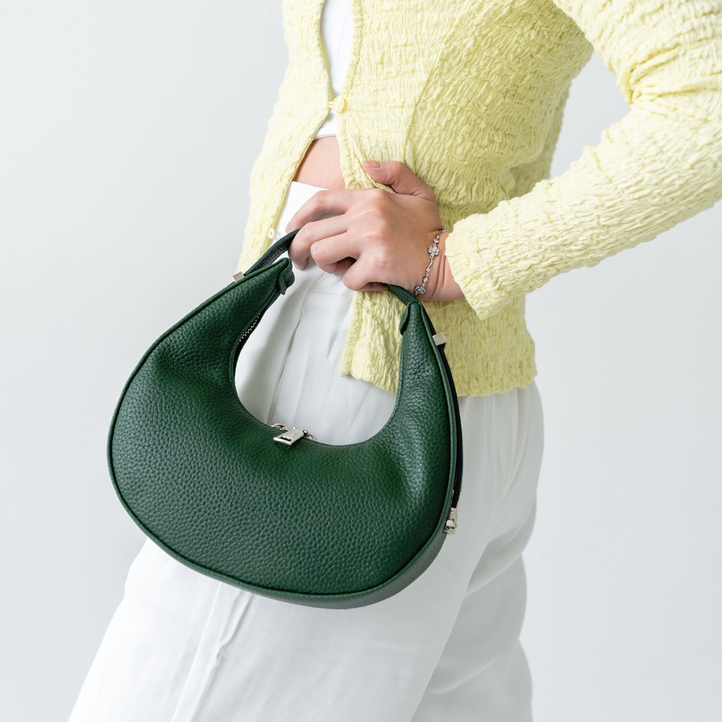 Meet GAIA, a mix of simple yet chic style in a curve shape. Perfect to fit the mood of your versatile looks in any occasion. Featuring a detachable clasp to wear it either as a shoulder or hand bag.
