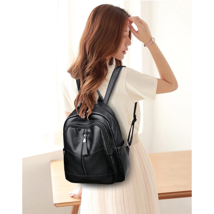 Ransel Nami Bahan Semi kulit / Kulit Sintetis Size : 27 x 13 x 31 Cm ( P x L x T ) Ada 3 Pilihan Warna Terdapat 1 Ruang Resleting Utama, 2 Resleting Depan dan 2 Saku Samping Tas menggunakan puring/lapis dalam Berat 400 gram Tekstur bahan kulit jeruk lembut / halus