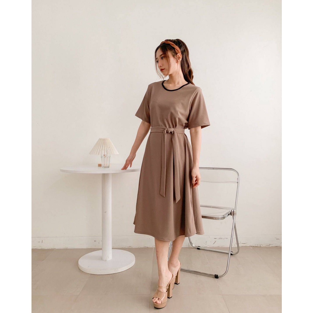 Narosi Ribbon Dress IDR 117,000 Available in Black, Choco, Coral and Milo Material : Rib Knit LD : 96cm (masih bisa stretch) Length : 105cm *warna sesuai foto gantung *tali dapat dilepas *grosir minimal seri warna disc 10,000/pcs