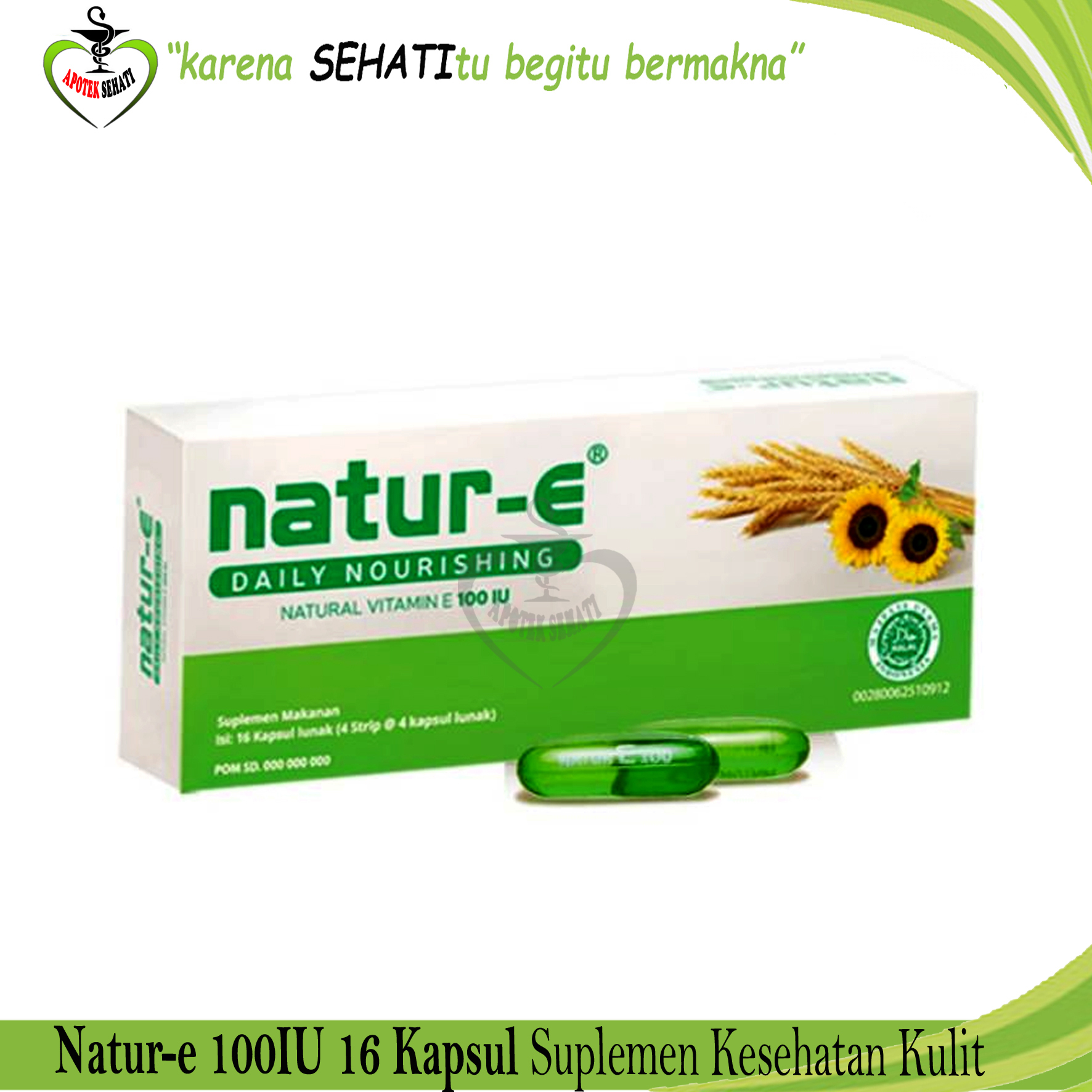 NATUR-E 100 IU Suplemen yang mengandung Vitamin E alami yang berguna untuk membantu memelihara kesehatan kulit. Suplemen ini digunakan untuk membantu memenuhi kebutuhan vitamin E yang membantu memelihara kesehatan kulit Komposisi Setiap kapsul mengandung : Natural Vitamin E 100 IU. Dosis 1-3 kapsul per hari. Aturan Pakai Dikonsumsi sesudah makan. Segmentasi Vitamin & Supplement Manufaktur Darya Varia Laboratoria No. Registrasi BPOM: SD041317161