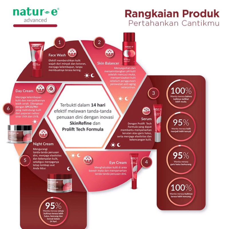 Natur-E Advanced Anti-Aging Eye Cream mengandung astaxanthin dari ganggang merah, super anti-oksidan yang banyak dicari dalam skin care. Nah, astaxanthin sendiri memiliki segudang manfaat untuk kesehatan kulit, mulai dari memberi perlindungan dari bahaya radikal bebas dan sinar UV, menjaga kelembapan, mengembalikan elastisitas kulit, hingga menyamarkan kerutan, garis halus, dan mengecangkan kulit. Perpaduan komposisinya pas banget ya untuk merawat kulit di area mata!