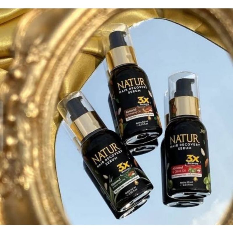 3.Natur Hair Recovery Serum Almond & Olive Oil Olive Oil di dalam almond dapat membantu mengembalikan kelembapan dan elastisitas pada rambut, serta membantu memperbaiki rambut yang rusak