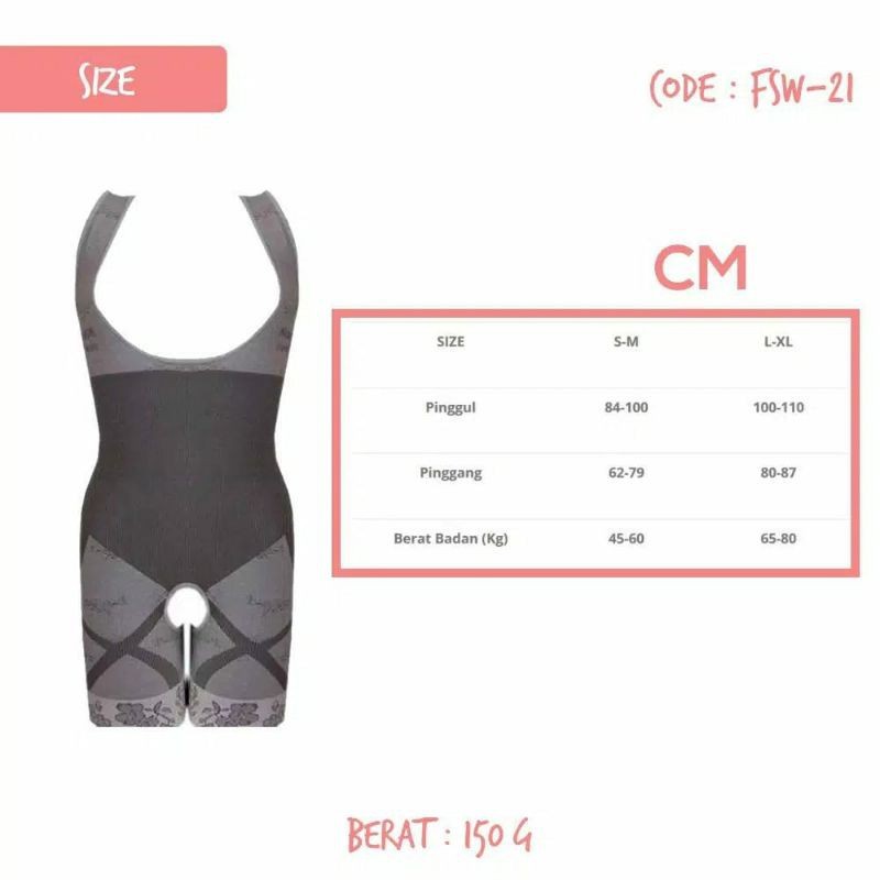 Ada 2 size: S-M : panggul 84-94; pinggang 62-72; berat badan 45-60 L-XL: panggul 98-105; pinggang 76-81; berat badan 65-85