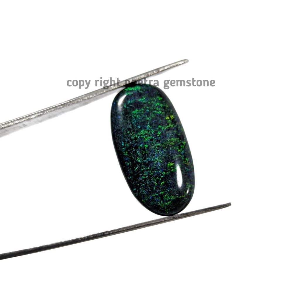 Original Natural Boulder Matrix Black Opal Andaamoka Australia Dimensi : 24x13x5mm (12.76 crats) Colour : Black Natural Cutting : Oval Shape : Oval Cabochon Transparency : Opaque