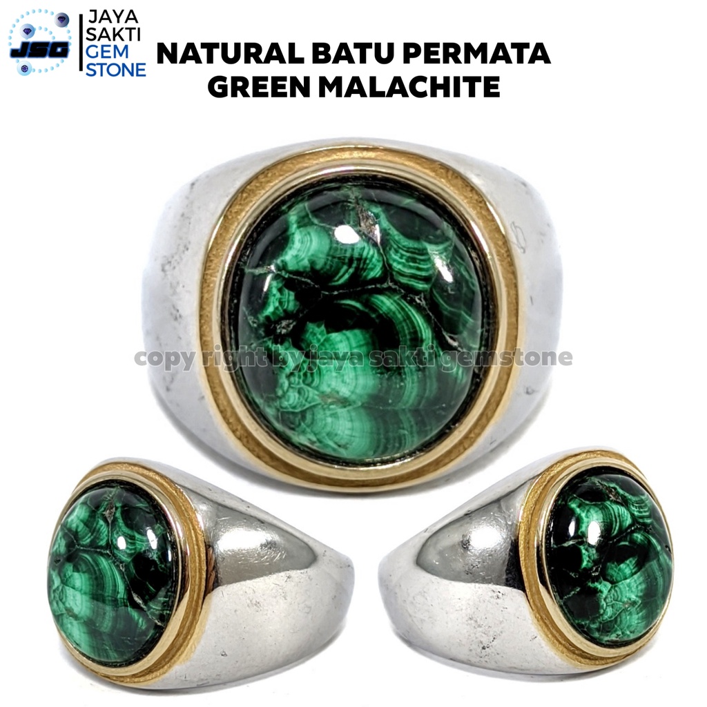 - Material Natural Green Malachite - Jaminan Natural - Dimensi : 14x13x6mm (est) - Warna Natural - Size Ring 8 - Material Ring Alpaka
