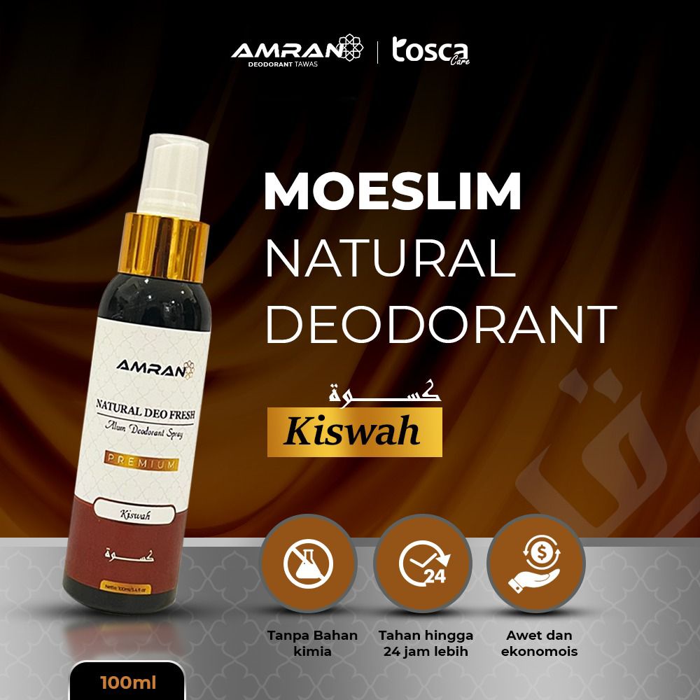 AMRAN Natural Deo Fresh Premium merupakan deodorant 100% berbahan alami, aman untuk kulit dengan aroma islami khas timur tengah yang menyegarkan dan mampu memberikan kesegaran pada ketiak Anda dalam beraktivitas. Cocok dipakai untuk segala aktivitas di luar ruangan dan menambah kekhusyukan dalam beribadah. Tinggal semprotkan setelah mandi, dijamin bau badan hilang dan tahan hingga 24 jam, penggunaan sangat praktis dengan packaging yang mudah dibawa.
