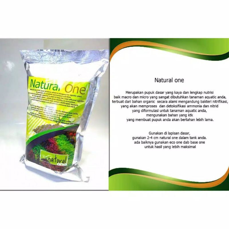 Natural One adalah pupuk dasar yang mengandung nutrisi komplit dan seimbang, yang digunakan sebagai pupuk dasar untuk tanaman air atau aquascape.