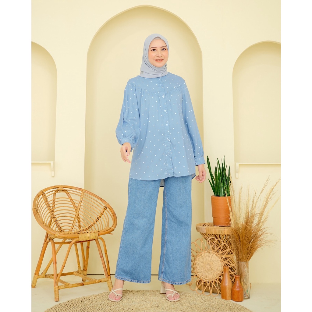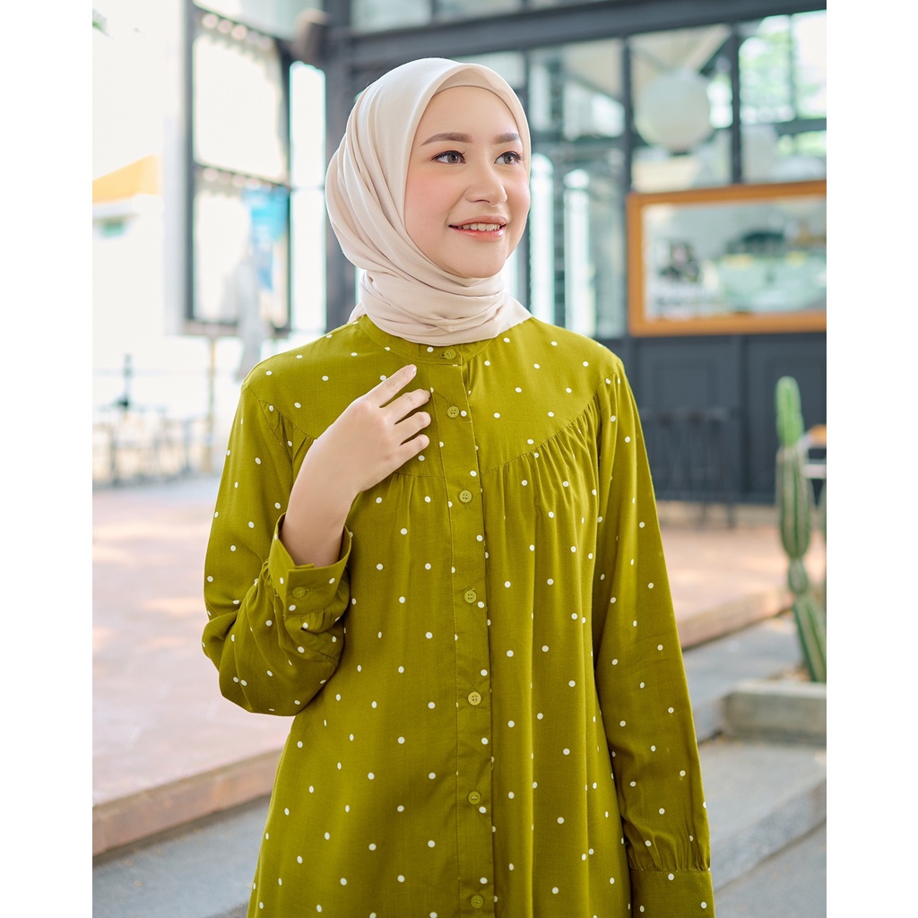 NATYA BLOUSE IDR 145.000 . Material bahan rayon viscose Bahannya adem, ringan, tidak kaku, flowy, jatuhnya cantik banget saat dipakai. ✔️ Bagian depan terdapat kancing (Busui friendly) ✔️ Bagian tangan terdapat detail kancing (wudhu friendly) Tersedia 7 pilihan warna dan 4 ukuran S,M,L,XL