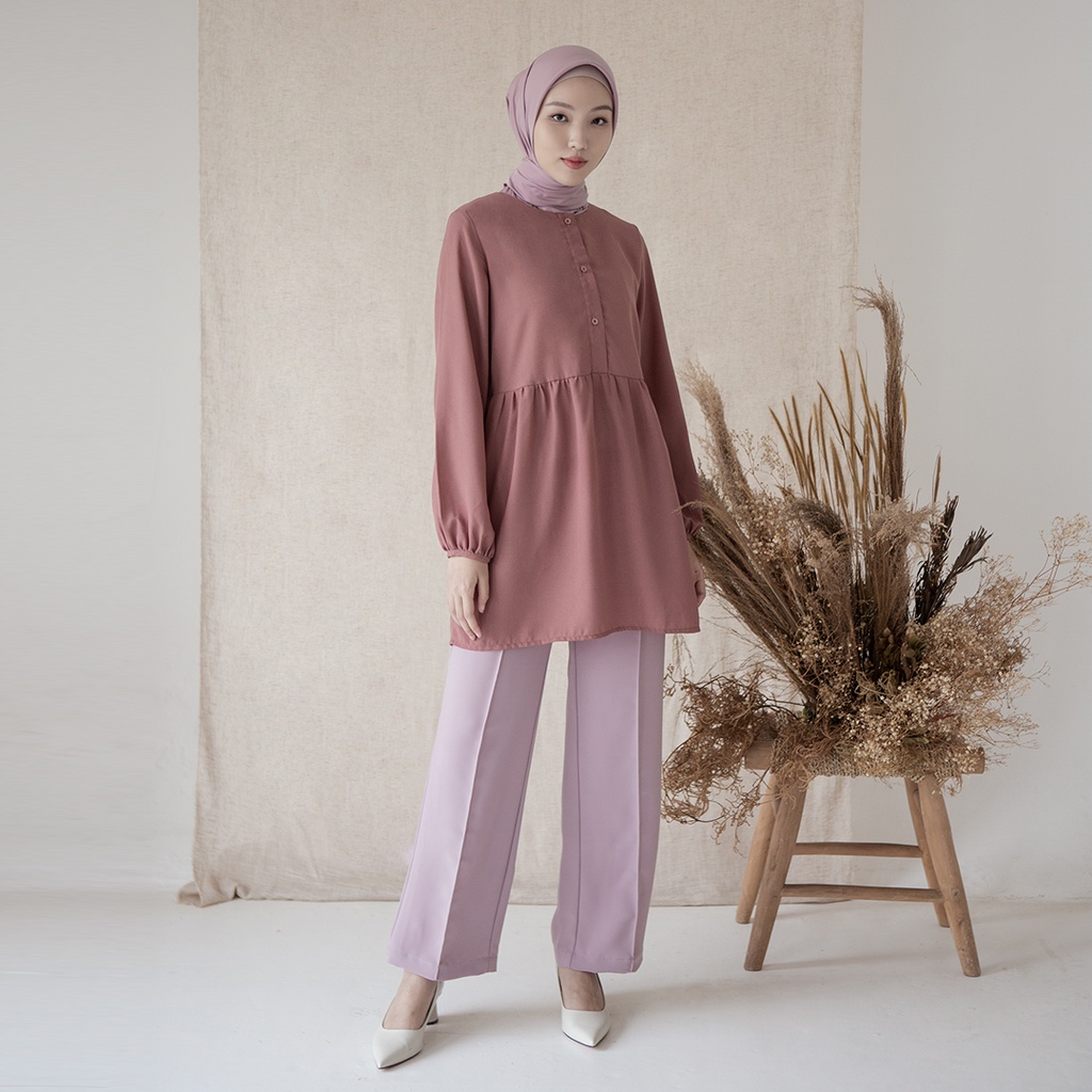 Fashion Muslim > Atasan Muslim Wanita > Kemeja, Blouse, & Dalaman Blouse > Naura by Aska Label - Atasan basic wanita blouse warna putih offwhite, biru navy, ungu lilac, abu taupe, dusty pink raspberry dengan tangan kerut dan kancing depan busui friendly