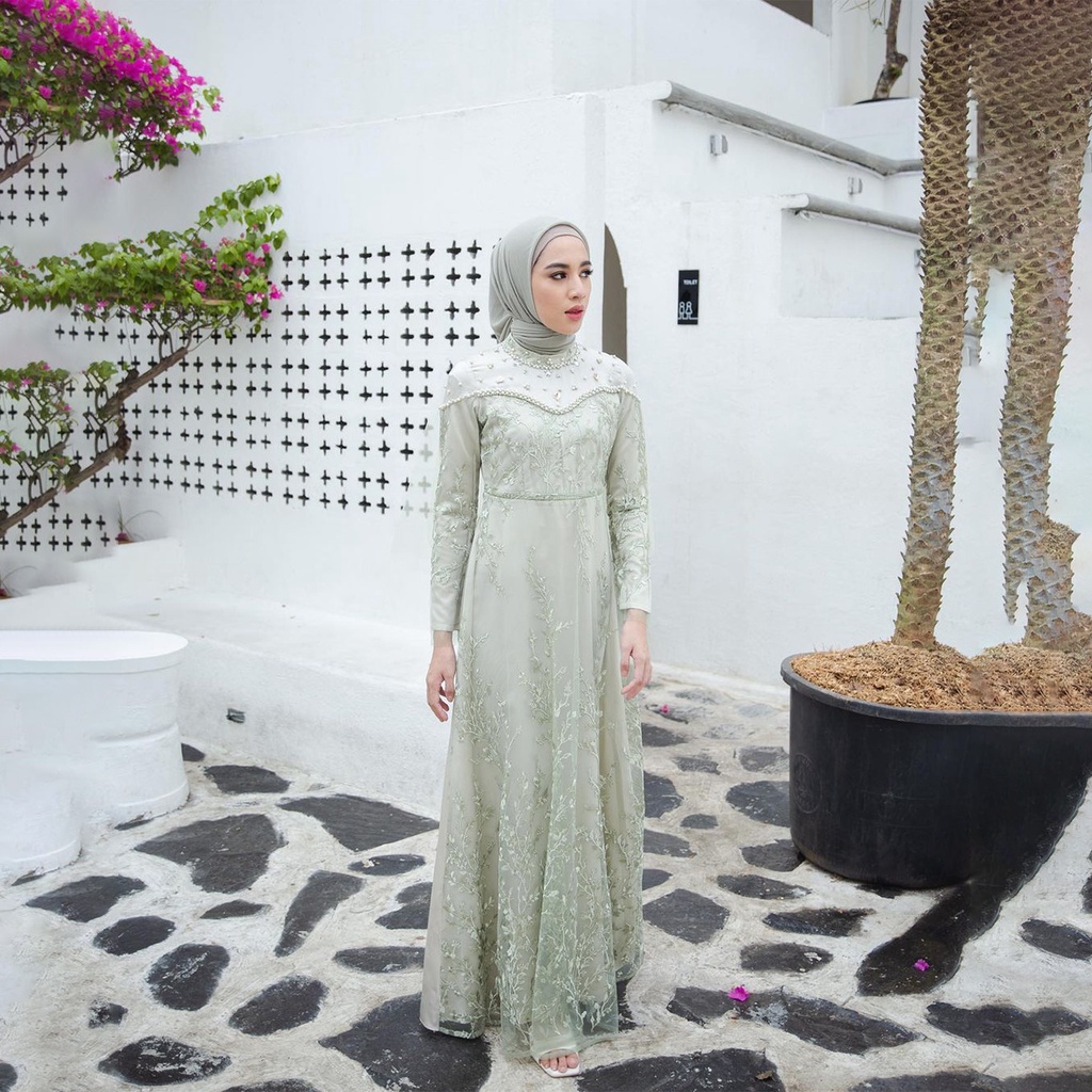 Detail NAYAKA BATIK - Dress Kondangan Fania Brukat Tulle Mutiara Bridesmaid Dress Pesta Kekinian Gamis Lebaran Terbaru