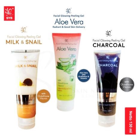 Detail * NCC * SYB Peeling Gel Scrub Facial Glowing Face Exfoliating Wajah Milk Snail aloe Vera Charcoal - Netto 130 ml