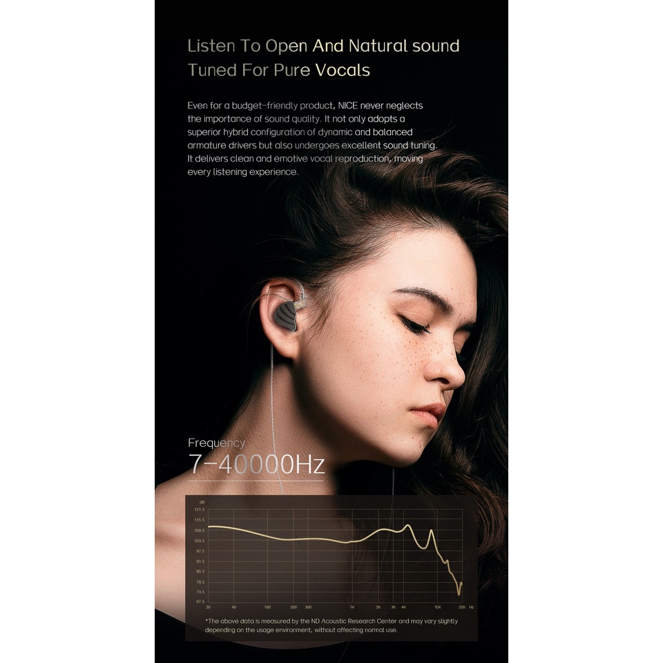 Parameter Prestasi Kinerja Model Model: ND-Nice ND-Nice Frekuensi: 7-4000HzHz Sensitivitas: 111dB±3dBBB Impedansi: 25Q±15% Unit Drive: DD jarak penuh 10mm + BA frekuensi tinggi tengah Bahan rongga: Paduan seng + resin PC + resin PC Jenis Pin:0.75mm 2Pin 2Pin Sumbat jenis Steker: steker logam 3,5 mm Inti kawat: Inti kawat berlapis perak bebas oksigen: Inti kawat berlapis perak bebas oksigen Panjang Kabel: 1,25m±0,05mmmm,05m Gaya Memakai: Over-ear + in-ear + in-earing