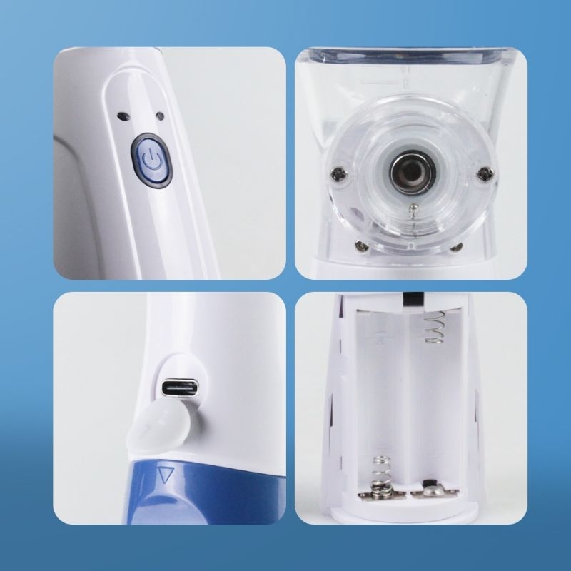 Detail NEBULIZER MESH MINI INHALER PORTABLE ELECTRIC BATERAI TERAPI PERNAPASAN ASMA BRONKITIS NEBULIZER MESH KECIL BIRU