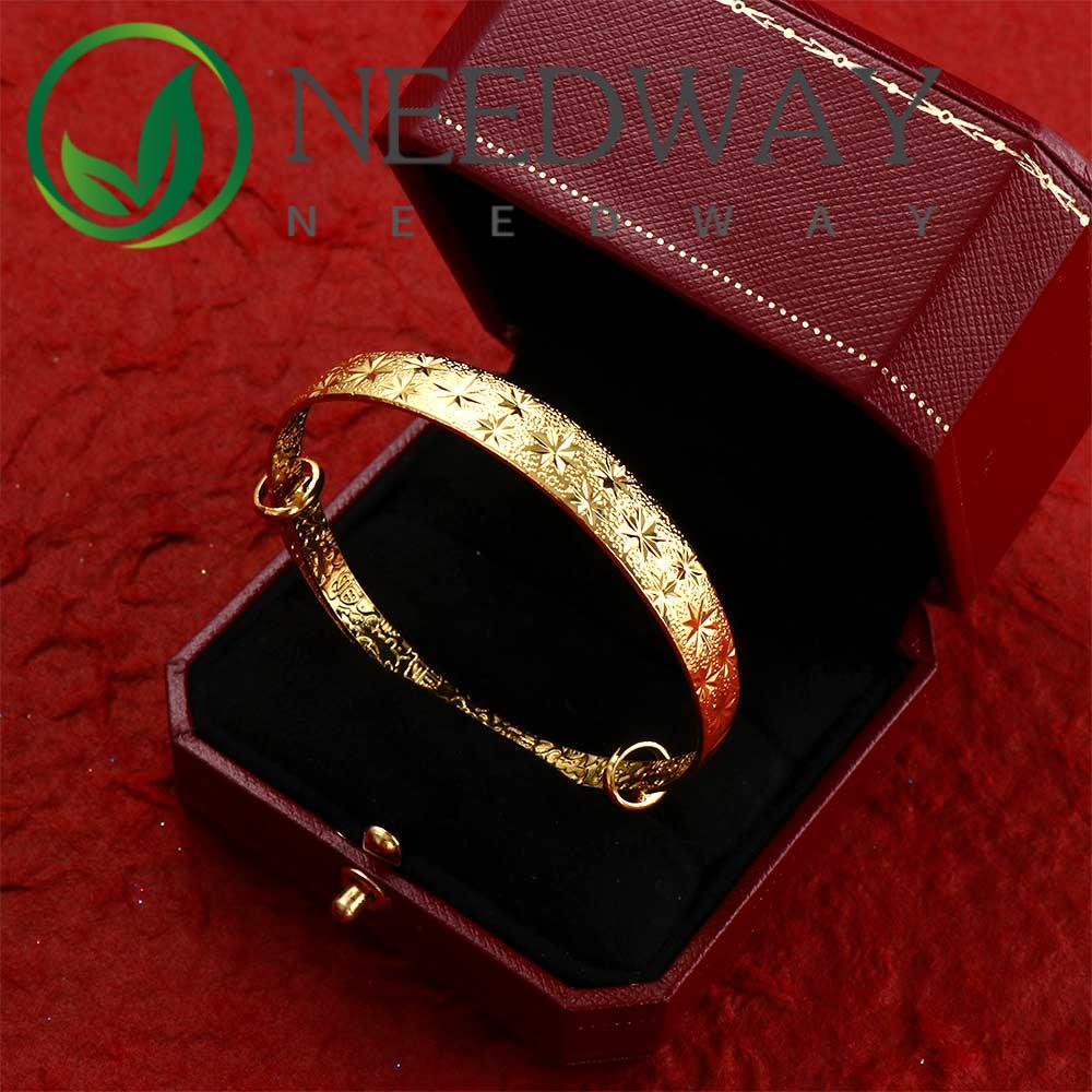 Aksesoris Fashion > Gelang Tangan & Bangle > Needway Adjustable Bangle Warna Emas Mengkilap Pernikahan Pengantin Dekorasi Perempuan 24 K Perhiasan Hadiah Arab Saudi Wanita Gelang