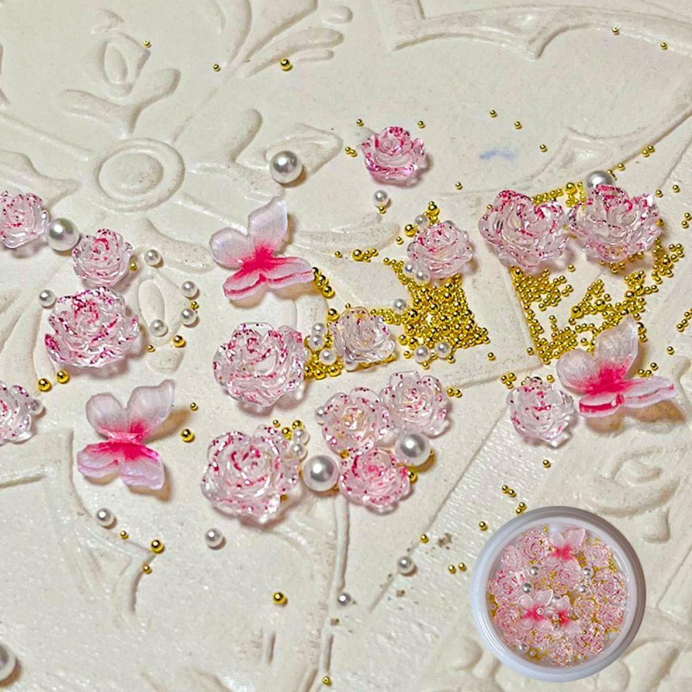 Seni kuku ini cocok dengan kuku Bergabunglah dengan kegilaan Seni Kuku untuk Seni Kuku Aksesoris Kuku Ornamen Manikur Dekorasi Seni Kuku Hitam Camellia Kupu-kupu Mutiara Bola Baja Resin Elegan Diy 3d