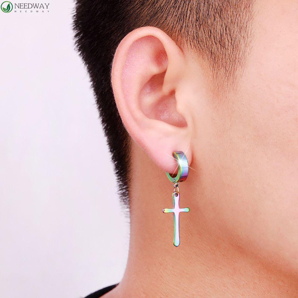 Tipe Barang: Anting-anting Cross Clip Earring Pria Manset Telinga Non-Tindik Anting Fashion Perhiasan Stainless Steel Wanita Unisex Hadiah Elegan Gothic Punk Sederhana Keren Hip Hop