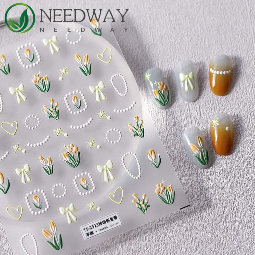 Needway Bunga Stiker Kuku Fashion Self Adhesive Daun Tulip Ikatan Simpul Nail Art Dekorasi
