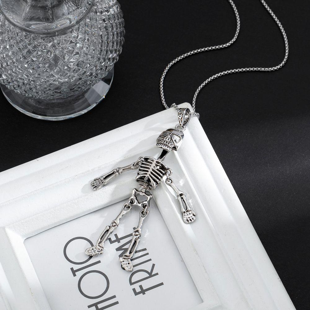 Paket termasuk: 1 Pcs Kalung Kalung Kalung Pria Gaya Korea Kalung Kerangka Manusia Bentuk Liontin Baja Titanium Keren Tampan Punk Fashion Hiphop Perak Retro Vintage Kreatif