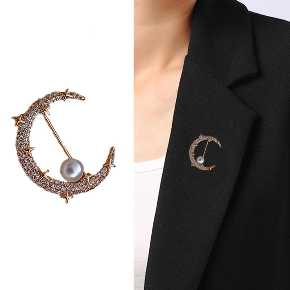 Jenis: Broochechechechechechechecheche: Bahan Berlian Imitasi: Paduan, Berlian Imitasi Warna Emas: Emas Emas Ukuran: Lenth: 3cm, Lebar: 2.8cm: 2.8cm Pola Bulan: Bulan Gaya Temperamen Kemasan: 1 pcs Bros Bros Mutiara Bros Bintang Kerah Pin Jas Kemeja Lencana Aksesoris Pakaian Berlian Imitasi Bulan Gaya Korea Perhiasan Fashion Wanita Temperamen