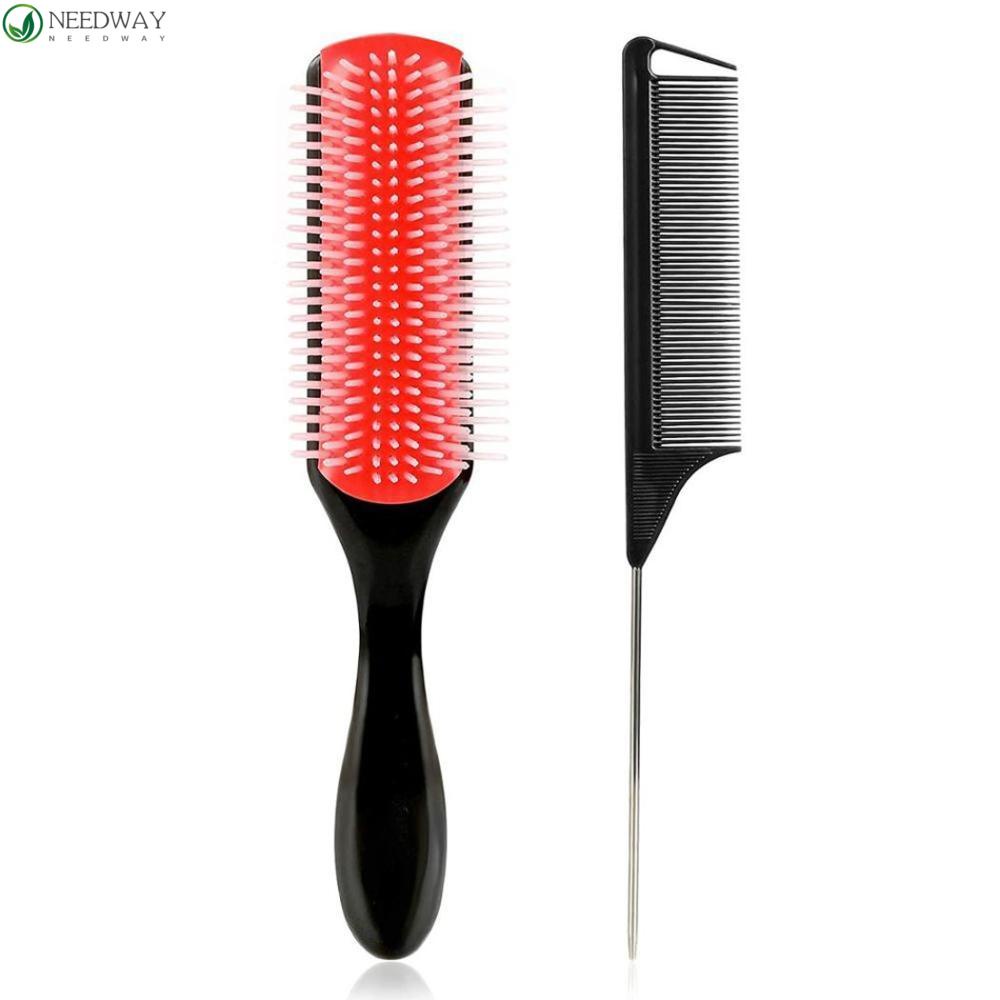 Detail Needway Sisir Rambut Non-slip 9-baris Bulu Tepi Sikat Alat Penata Rambut Pijat Kulit Kepala Sisir Ekor Tikus
