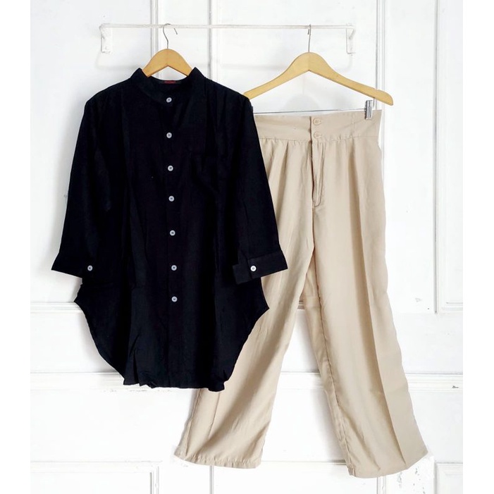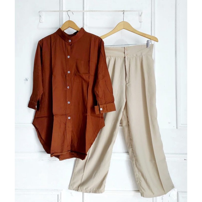 Kemeja Rayon Twill Set Celana Kulot Highwaist