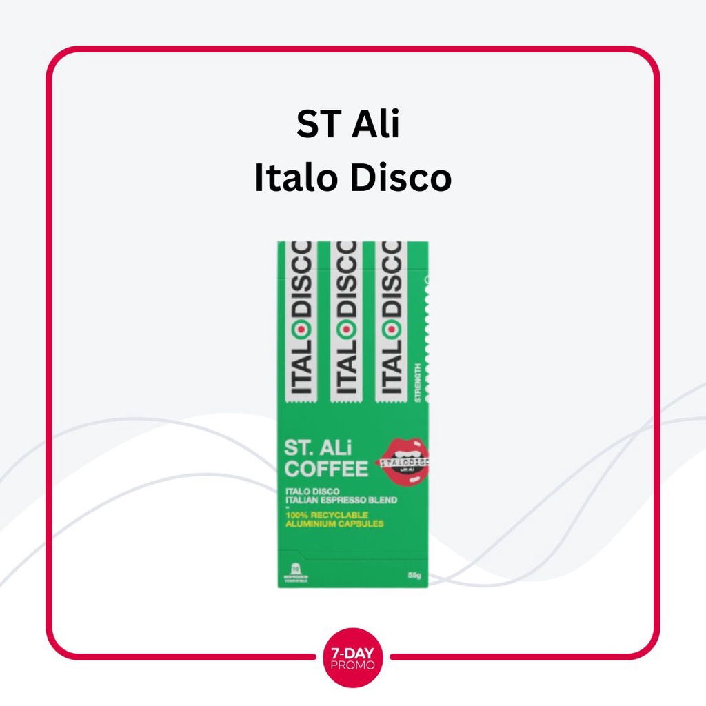 - ITALO DISCO Rich Dark Chocolate + Spice Italo Disco reinvents what a dark roast can be. All moody Moogs and syrupy synths, this blend brings deeply layered flavour with a sweet dark cup.