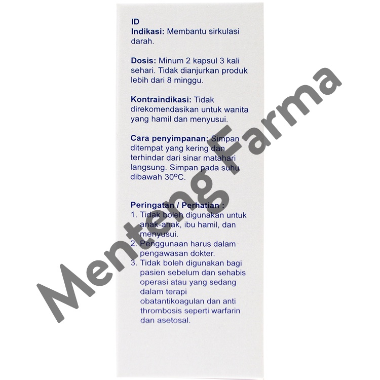 Cara Pakai: Minum 2 kapsul 3 kali sehari, tidak dianjurkan produk lebih dari 8 minggu Komposisi: Lihat pada kemasan produk