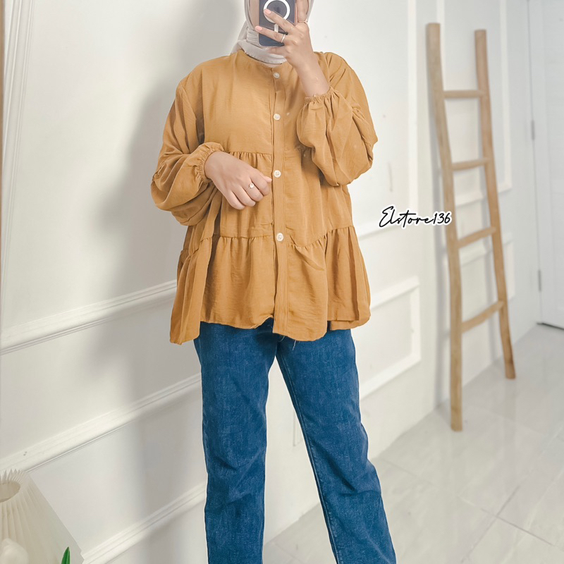Detail Neva Blouse Crinkle Airflow Atasan Wanita Full Kancing Lengan Panjang OOTD Remaja