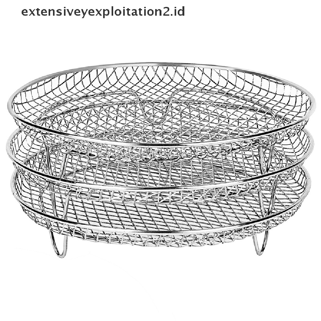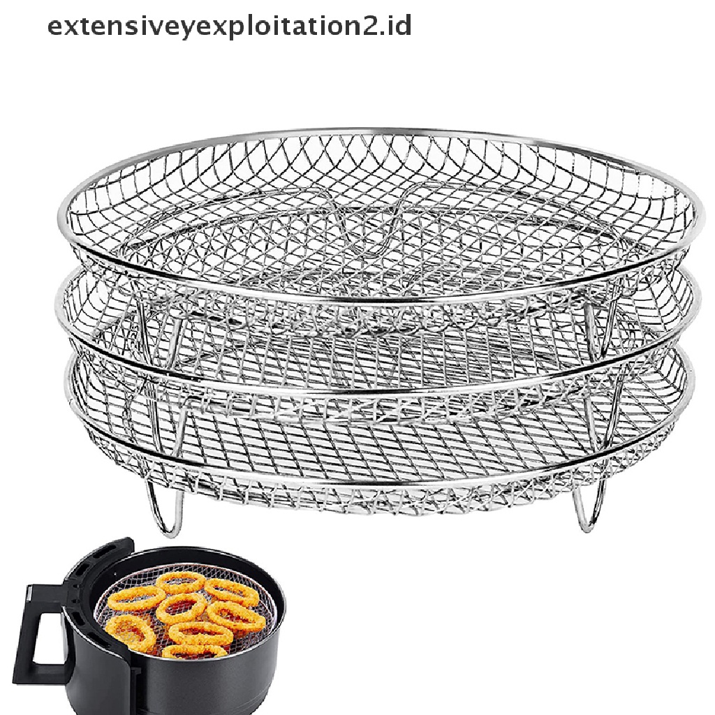 Detail {NEW} 1pc 3-Layers Round Air Fryer Rack Stackable Grid Rak Pemanggang Gadget Dapur.