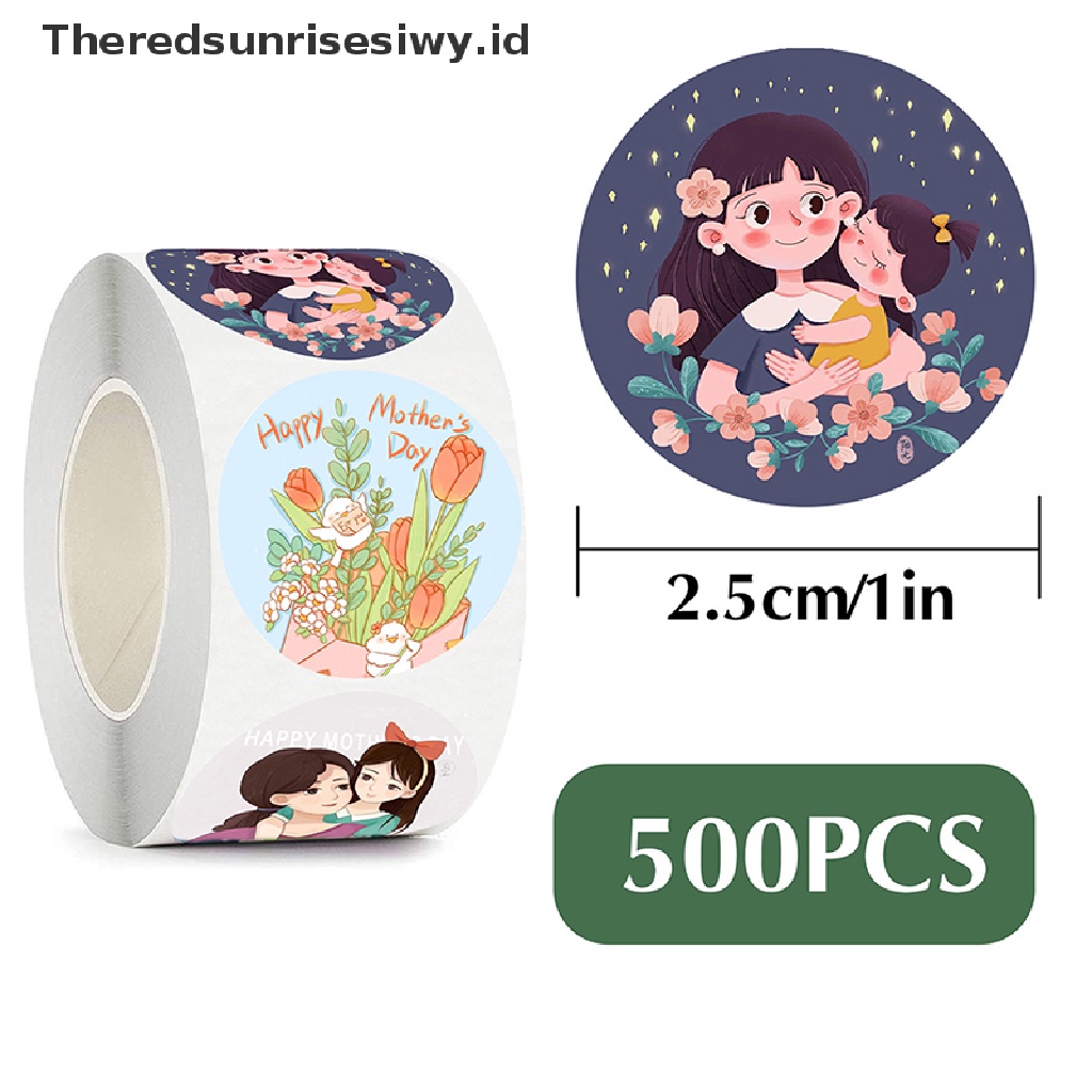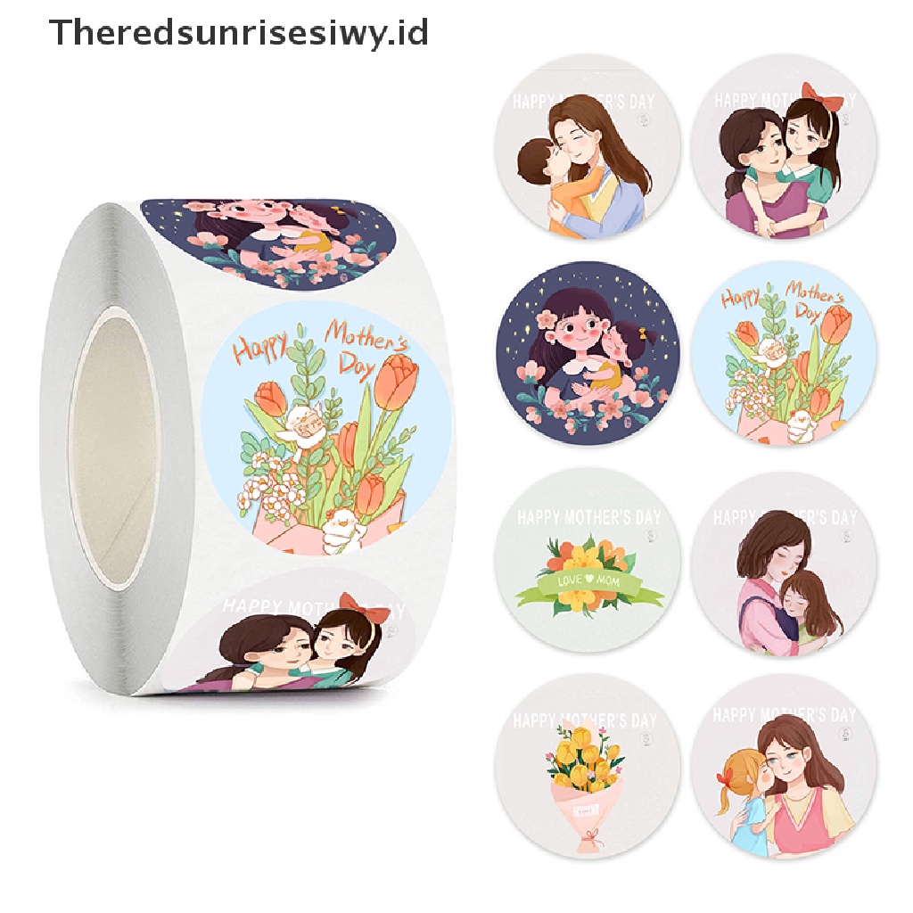 Detail #New# 500pcs/roll Stiker Label Hadiah Happy Mothers Day Kraft Bentuk Bulat Stiker~