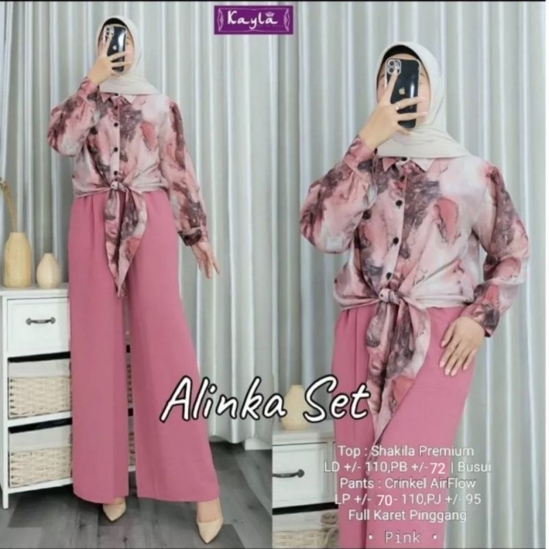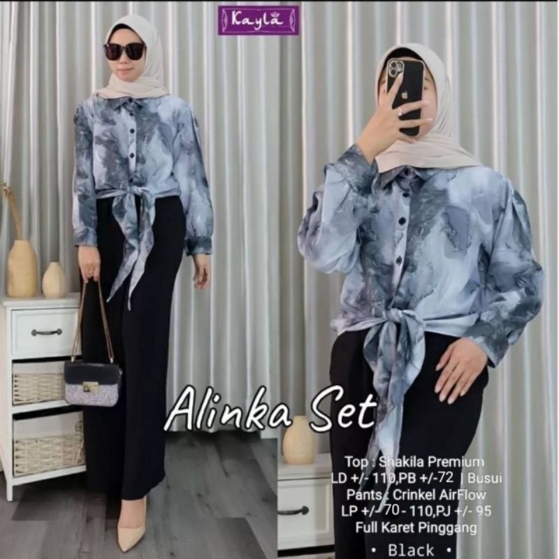 New arrivals 😍 ALINKA SET Atasan model terkini tali depan bahan shakila, celana kulot bahan crinkle, lebih nyaman dipakai, ld 110 cm pb 72cm, kancing hidup. Panjang kulot 95cm, lebar paha 70cm, full karet ada kantong