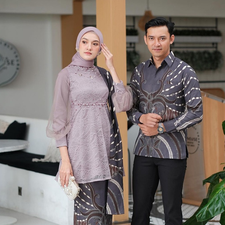 Pakaian Wanita > Batik > Set Pakaian Couple Batik > New Arrival - Baju Couple Pasangan Kebaya Modern Set Jovita Brukat Payet Mix Velvet Katun Prima Batik Couple Lengan Panjang M L XL